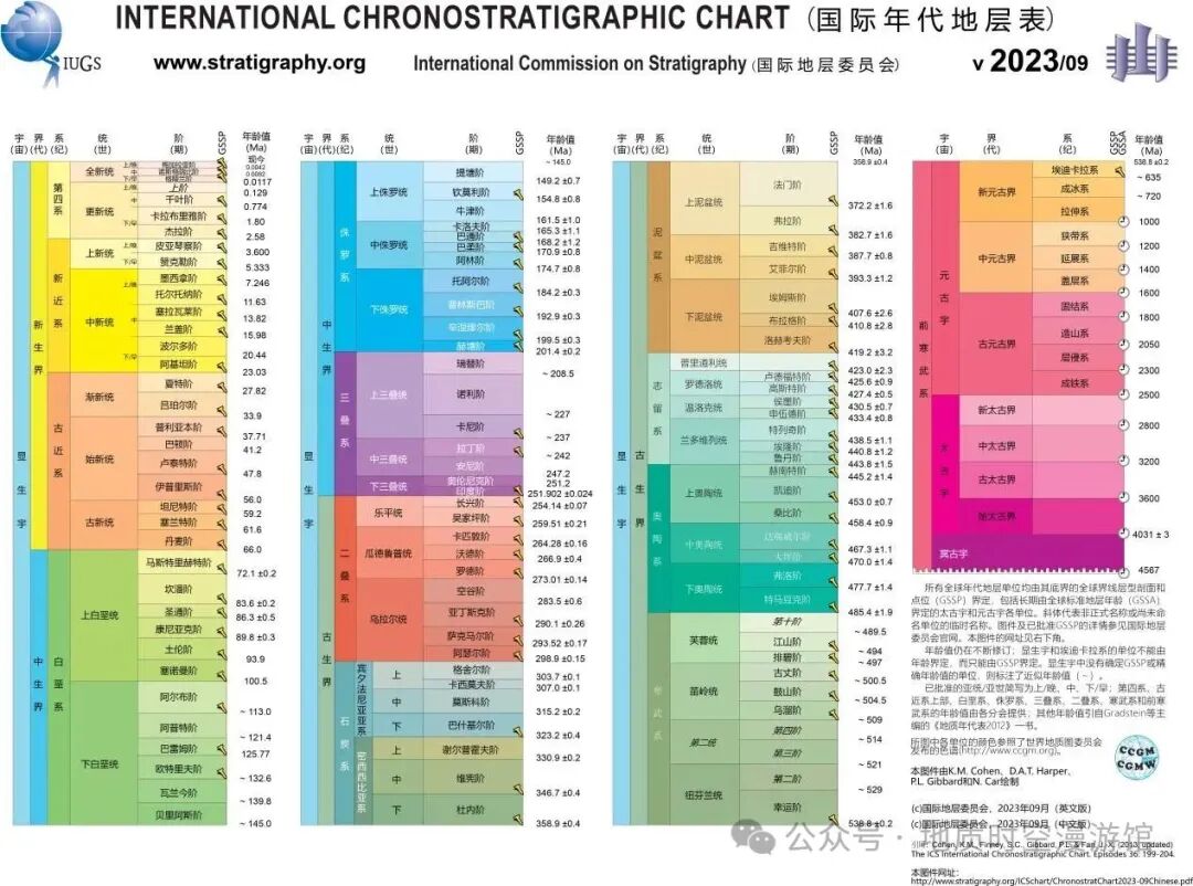 宇:最大的时间块,地球历史被分为冥古宇、太古宇、元古宇、显生宇4个宇。比如显生宇就是“看得见生物的时代”,从5.41亿年前至今。